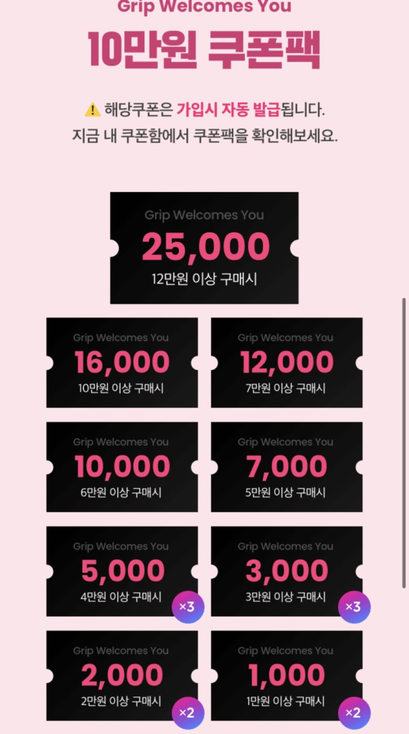 그립이 처음 시작하는 분은 총 10만원 쿠폰팩 즉시 지급됩니다~